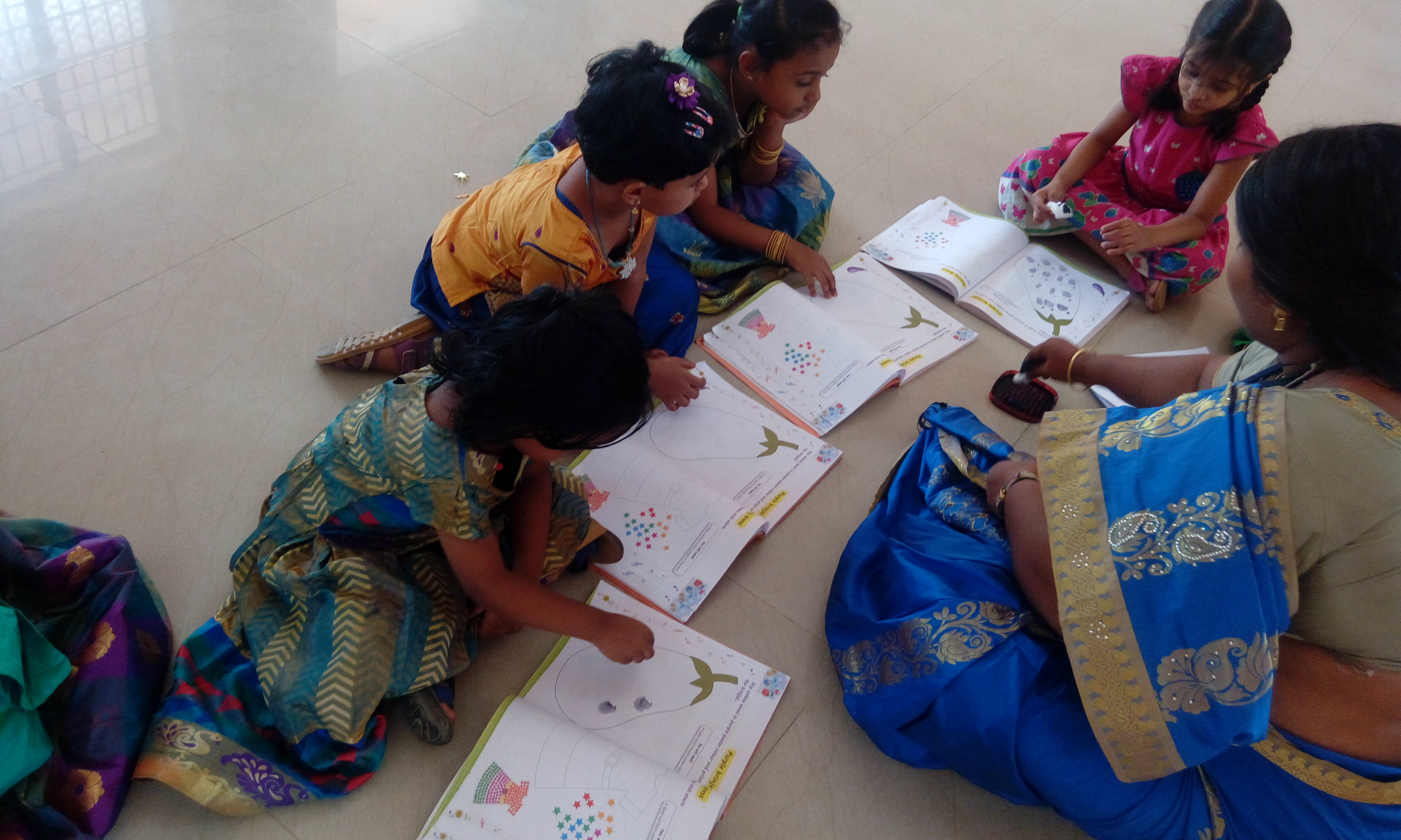 For K.G. level advanced books are followed for enhancing knowledge and skills; particularly communication. To develop finger dexterity various activities are given to the students.